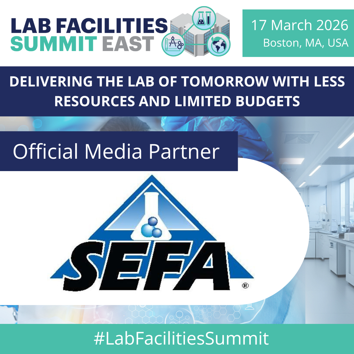 SEFA Partners with AMG World - Lab Facilities Summit East - Hyatt Regency - Boston, MA - March 17, 2026